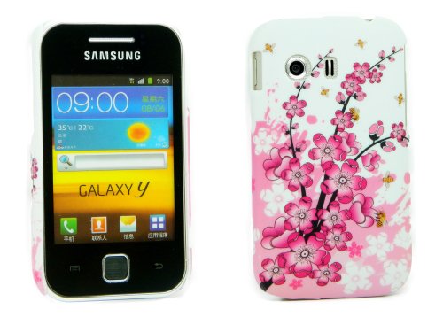 Kit Me Out IT - Samsung Galaxy Y S5360 Android Pacco Di Economia - Duro Protezione Custodia / Cover / Skin Clip Sul Rosa Fiori + LCD Pellicola Protettiva Schermo + Compatibile Micro USB Nel Caricatore Dell'Automobile