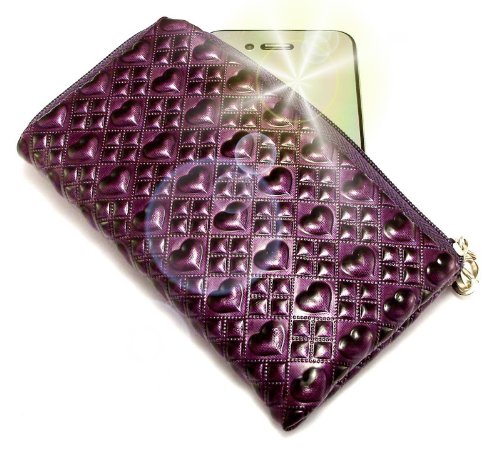 "Amore" Viola, Elegante portafogli imbottito con finitura lucida e cerniera con ciondolo per Samsung i5500 Corby Smartphone. Bustina imbottita con cerniera / Custodia / Guscio per cellulare.