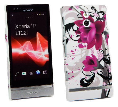 Kit Me Out IT - Sony Xperia P Android Pacco Di Economia - Duro Protezione Custodia / Cover / Skin Clip Sul Porpora Fiori + LCD Pellicola Protettiva Schermo + Compatibile Micro USB Nel Caricatore Dell'Automobile