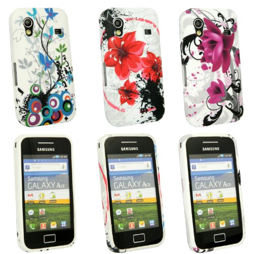 Kit Me Out IT - Samsung Galaxy Ace S5830 Android Pacchetto Di OF 3 Protezione Custodia / Cover / Skin Gel TPU Country Giardino & Oriental Fiori & Porpora Fiori