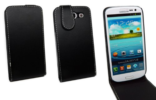 Kit Me Out IT - Samsung Galaxy S3 III i9300 - Protezione Custodia / Cover / Skin Premium Cuoio Flip - Nero + LCD Pellicola Protettiva Schermo