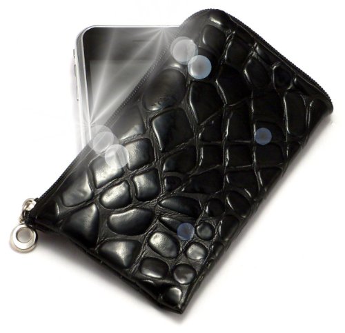 "Geco" Nero, Elegante portafoglio / Custodia in neoprene con cerniera adatta per Samsung i5500 Corby Smartphone. Bustina con Cerniera / Custodia / Guscio per cellulare.