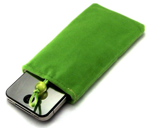 "Desiderio" Verde, Originale bustina simil velluto con cordoncino per Samsung i5500 Corby Smartphone. Calzino morbido per Cellulare.
