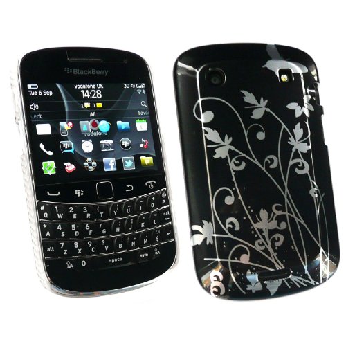 Kit Me Out IT - BlackBerry 9900 Bold - Protezione Custodia / Cover / Skin Super Slim - Nero & Argento Fiori + LCD Pellicola Protettiva Schermo