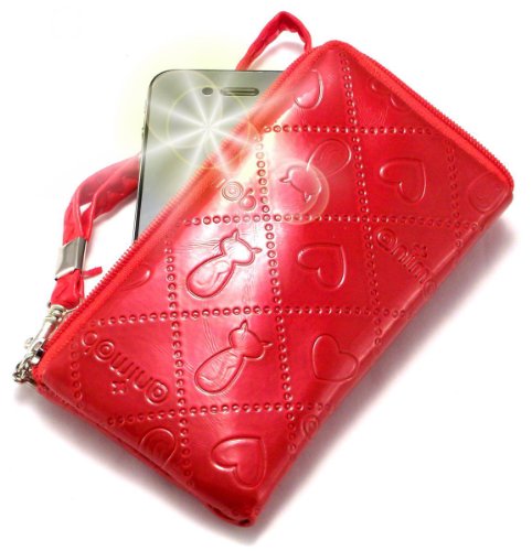 "Animate Deluxe" Rosso, Elegante portafoglio imbottito con cerniera adatta con ciondolo per Samsung i5500 Corby Smartphone. Bustina con Cerniera / Custodia / Guscio per cellulare.