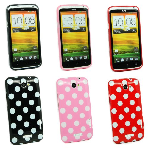 Kit Me Out IT - HTC One X Android Pacchetto Di 3 - Protezione Custodia / Cover / Skin TPU Gel 'Pois' Rosa, Nero/Bianco & Rosso