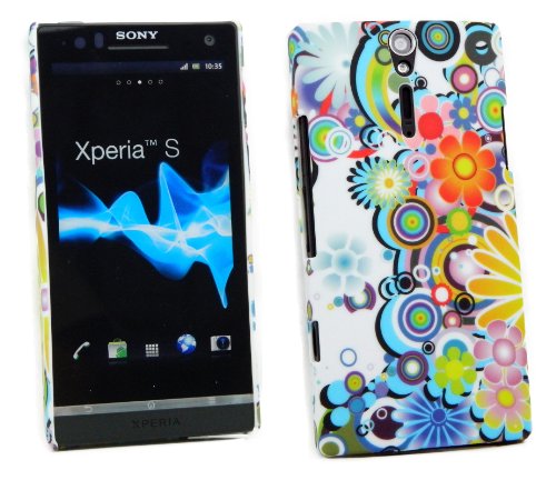 Kit Me Out IT - Sony Xperia S Android Pacco Di Economia - Duro Protezione Custodia / Cover / Skin Clip Sul Cerchi Con Fiori + LCD Pellicola Protettiva Schermo + Compatibile Micro USB Nel Caricatore Dell'Automobile