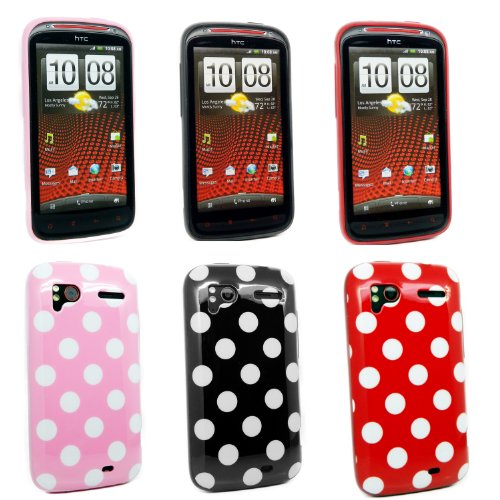 Kit Me Out IT - HTC Sensation / Sensation XE Pacchetto Di 3 - Protezione Custodia / Cover / Skin TPU Gel 'Pois' Rosa, Nero/Bianco & Rosso