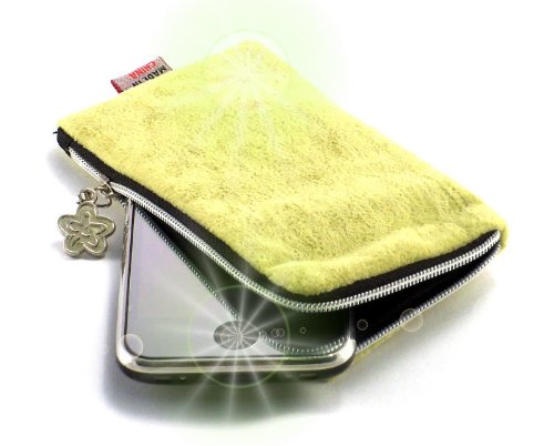 "Lanuginoso" Verde, Lussuoso simil pelliccia Portafogli / Custodia con cerniera con cordoncino per Samsung i5500 Corby Smartphone. Bustina con Cerniera / Custodia / Guscio per cellulare.