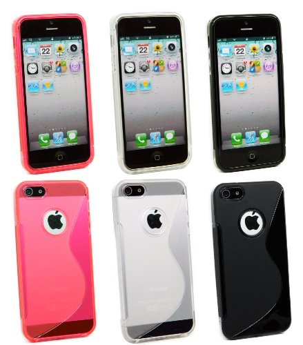 Kit Me Out IT - Apple iPhone 5 5G Pacchetto Di 3 - Protezione Custodia / Cover / Skin Gel TPU Con Foro Per Logo Apple - 'Le S' Nero, Rosa & Trasparente