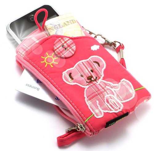"Orsacchiotto" Rosa, Original portafogli imbottito e cerniera con cordoncino per Samsung i5500 Corby Smartphone. Bustina con Cerniera / Custodia / Guscio per cellulare.