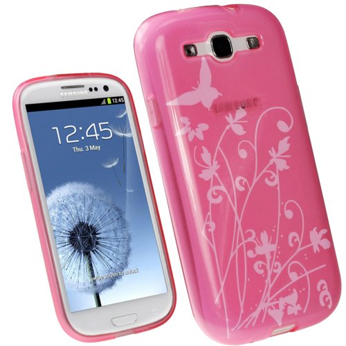 igadgitz Rosa Custodia Farfalla per Samsung Galaxy S3 III i9300 Android Gel Cover Rigida + Protettore Schermo