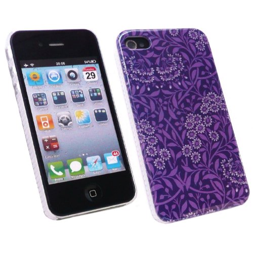 Kit Me Out IT - Apple iPhone 4 / 4G / HD - Pacco Di Economia - LCD Pellicola Protettiva Schermo + Caricabatteria Da Auto Compatibile Apple + Protezione Custodia / Cover / Skin Super Slim - Lavendar Fiori