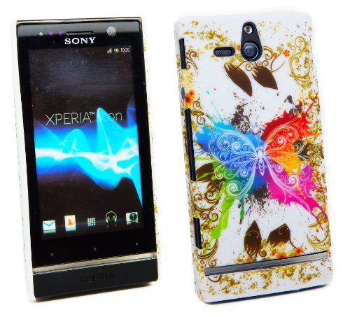Kit Me Out IT - Sony Xperia U Android Android Pacco Di Economia - Duro Protezione Custodia / Cover / Skin Clip Sul Coloured Farfalla + LCD Pellicola Protettiva Schermo + Compatibile Micro USB Nel Caricatore Dell'Automobile