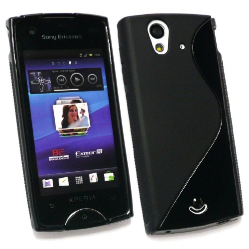 Kit Me Out IT - Sony Ericsson Xperia Ray ( ST-18i ) - Pacco Di Economia - LCD Pellicola Protettiva Schermo + Protezione Custodia / Cover / Skin en Gel TPU - 'La S' Nero + Compatibile Micro USB Nel Caricatore Dell'Automobile