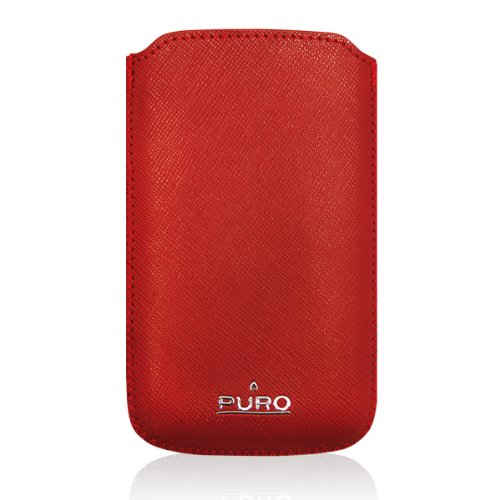 Puro Pcslimred SLIM Essential CASE RED Custodia / fondina per iphone 4 / 4s e smartphone con sistema di estrazione facilitata in ecopelle rosso