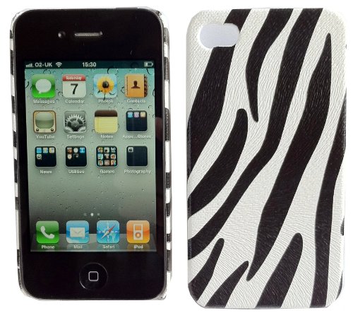 Kit Me Out IT - Apple iPhone 4 / 4G - Pacco Di Economia - Protezione Custodia / Cover / Skin Super Slim - Zebra Nero/Bianco + LCD Pellicola Protettiva Schermo + Compatibile Nel Caricatore Dell'Automobile