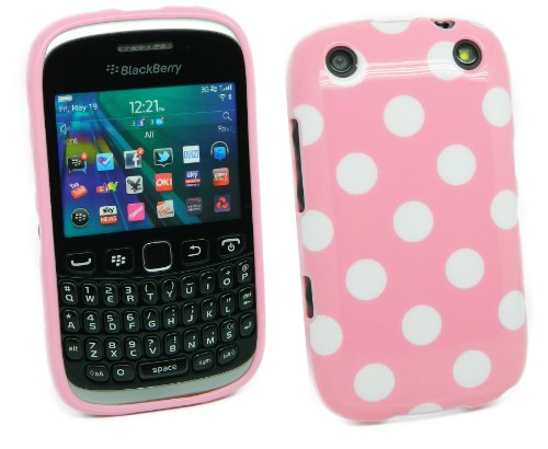 Kit Me Out IT - BlackBerry 9320 Curve Protezione Custodia / Cover / Skin TPU Gel Polka Dots 'Pois' Rosa + LCD Pellicola Protettiva Schermo