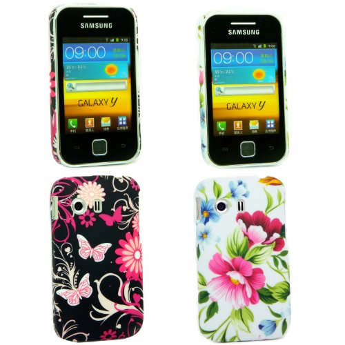 Kit Me Out IT - Samsung Galaxy Y S5360 Android Pacchetto Di 2 - Duro Protezione Custodia / Cover / Skin Clip Sul Vintage Fiori & Rosa Giardino