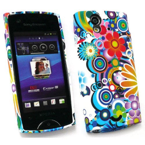 Kit Me Out IT - Sony Ericsson Xperia Ray ( ST-18i ) - Pacco Di Economia - Protezione Custodia / Cover / Skin en Gel TPU - Cerchi & Fiori + LCD Pellicola Protettiva Schermo + Compatibile Micro USB Nel Caricatore Dell'Automobile