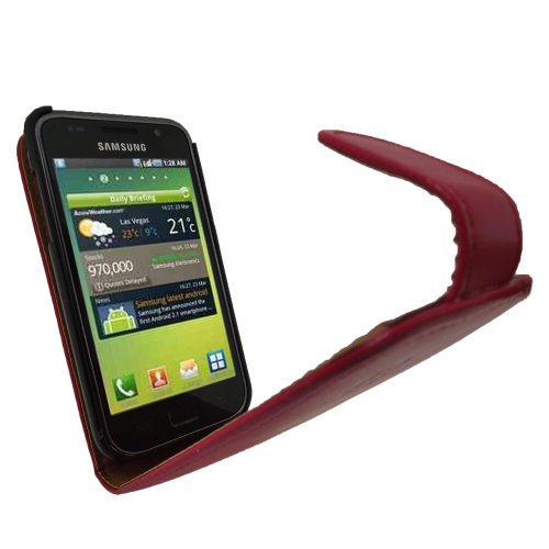 igadgitz Rosso Eco Pelle Custodia Case Cover Protezione per Samsung i9000 Galaxy S Android Smartphone Mobile + Protettore Schermo
