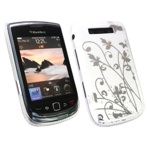 Kit Me Out IT - BlackBerry 9800 / 9810 Torch - Protezione Custodia / Cover / Skin Super Slim - Argento Fiori Bianco + LCD Pellicola Protettiva Schermo