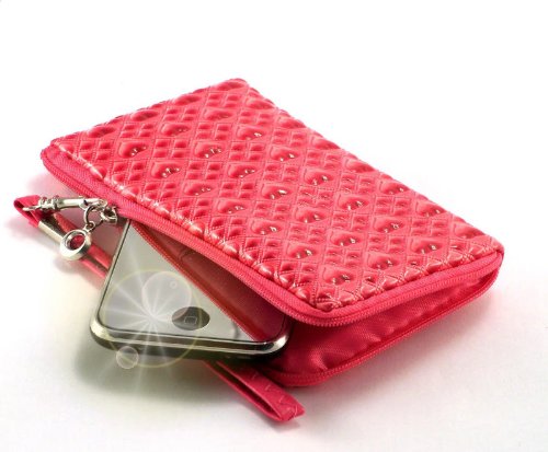 "Amore" Rosa Scuro, Elegante portafogli imbottito con finitura lucida e cerniera con cordoncino per Samsung i5500 Corby Smartphone. Bustina imbottita con cerniera / Custodia / Guscio per cellulare.